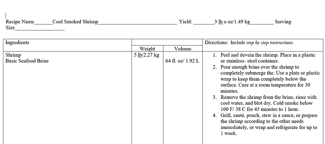 To create gravlax, the main cooking method is curing the salmon. The curing method is used for preserving meat or fish, with a combination of salt, sugar, and either nitrate or nitrite. Curing can also involve smoking. (Curing foods, n.d) To create smoked shrimp, the main cooking method is smoking. The use of smoking food will occur over fire. It adds a smoking flavor to your dish, which creates another depth of flavor.