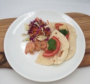 After the lab, I would modify a few things to the slaw. I would use a mandoline slice or hand- cut the cabbage. The cuts would be more consistent, and it would look better. We used a food processor which made the carrots a little too small, and some of the cabbage were larger pieces that had to be cut. I cut the carrot into smaller pieces before putting it in the food processor, and the best thing would to just leave it whole. The set up of using a food processor took a long time, so using a mandoline may be a more efficient way. When the shrimp was soaking in the brine for about 30 minutes, it helped intensify the flavor of the shrimp. The naan bread gave the dish more volume, and it was integral in tying together all components of the dish. The curing process did not take a lot of time, but trying to find some of the spices took the most time. I tried the cheese with everything, but the cheese's flavor profile did not really match everything else. I would either omit the cheese or try another cheese that would compliment the dish better. Overall, most flavors of the dish went well together.