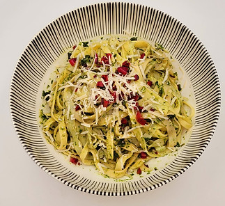 Utilizing various cooking methods such as blending, baking, boiling, sautéing, grilling and smoking to add additional flavor to plant focused dishes. Boiling is needed for cooking the pasta.