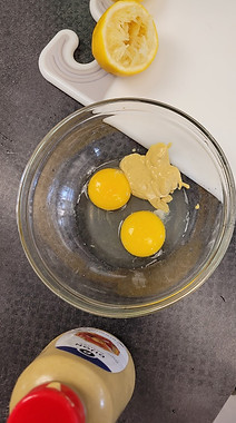 The texture of the egg pasta was slightly harder than expected. The taste and flavor of the pasta complimented well with the mushroom pate. The texture of the mushroom and walnut pate was very smooth and buttery. The most dominate taste was the umami from the mushrooms. The flavor was well balanced with the mushroom and walnut. The mushroom flavor was slightly more dominant than the walnut. The lemon aioli and mushroom pate brought the banh mi together. The lemon aioli 's citrus taste gave a refreshing taste. The creamy textures of the aioli and pate contrasted with the crunchier texture of the brad and pickled radishes. The radishes and jalapenos added more color to the overall dish.